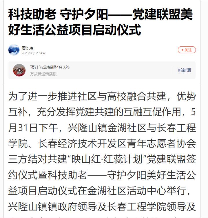 吉林日报等多家媒体报道我校党建联盟签约仪式暨科技助老活动