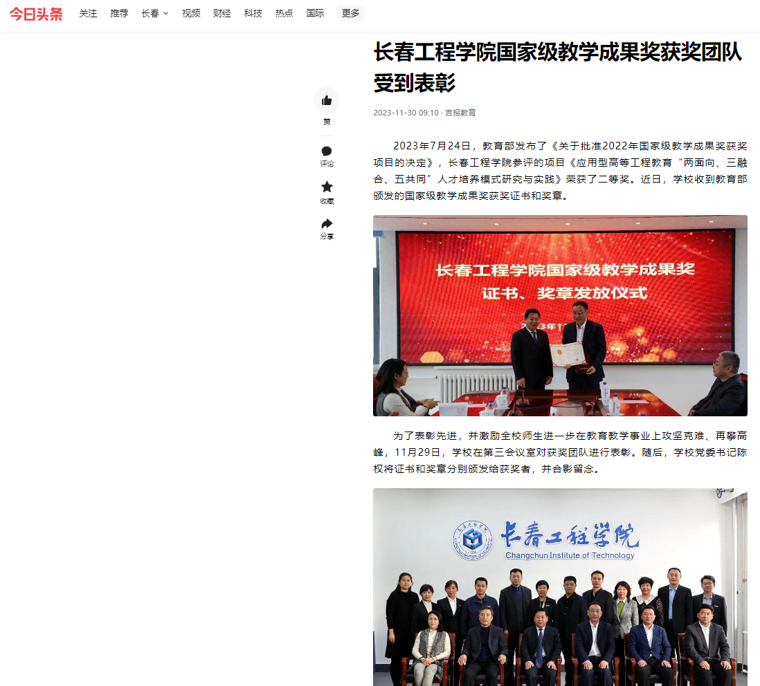 【今日头条】心博在线平台(中国)官网国家级教学成果奖获奖团队受到表彰