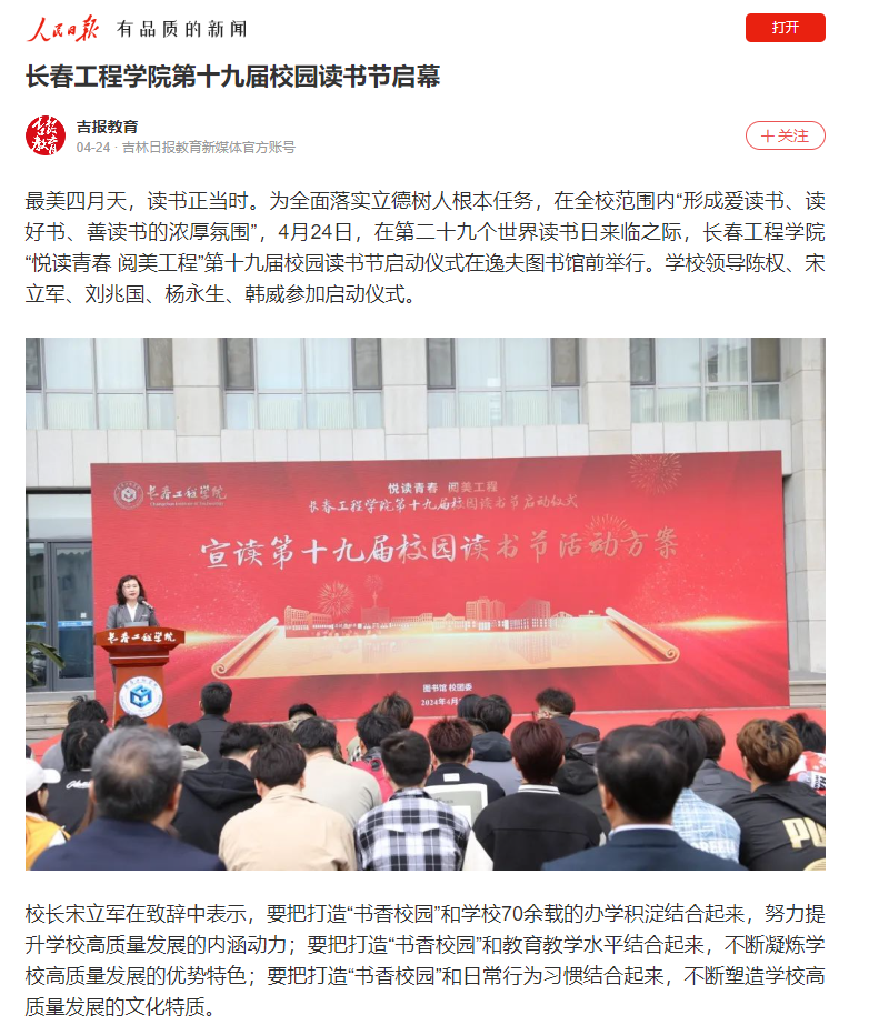 人民日报、大吉网等媒体报道我校第十九届校园读书节