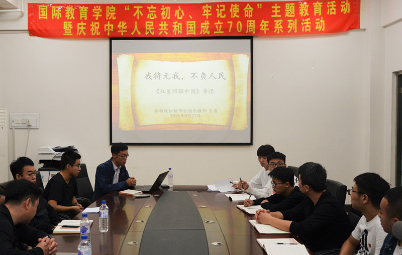 9 月 27 日下午,国际教育学院举办 " 不忘初心,牢记使命 " 主题教育讲书活动,学院党委领导、辅导员、学生党员和积极分子,以及格物致知读书会成员参加听书。