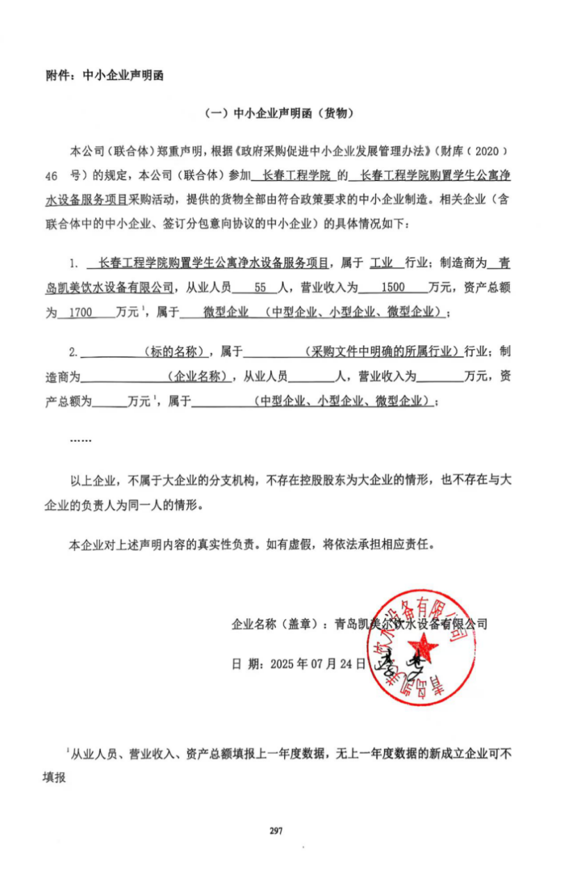 十、中小企业声明函